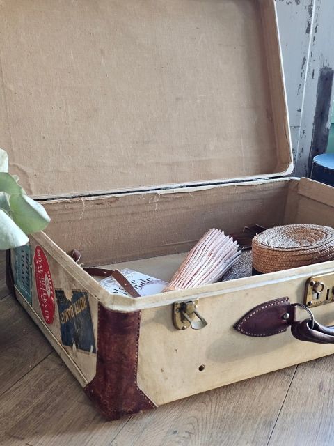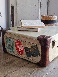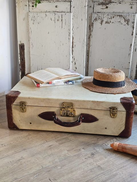 Cette ancienne valise Fichet circa 1940 avec ses renforts en cuir