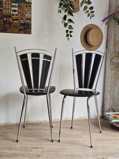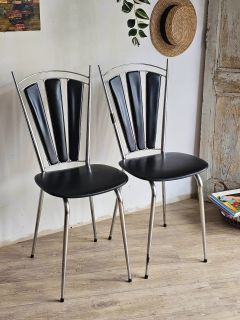 Assise et dossier en skaï noir, structure chromée à la ligne élégante