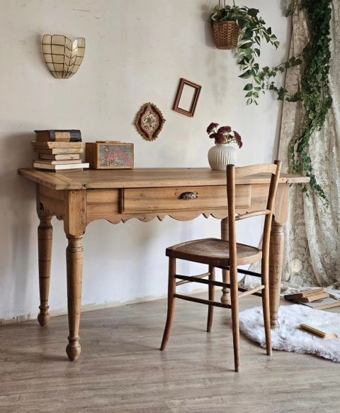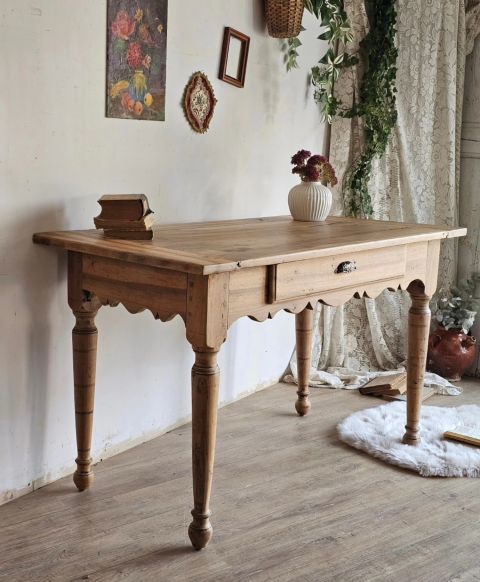 Ancienne table en noyer avec grand tiroir vers 1900.