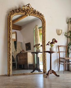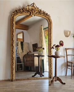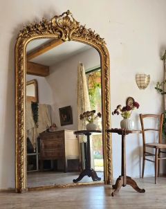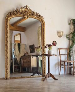 Très grand miroir doré à la feuille d'or, époque Napoléon III, fin XIXe siècle.