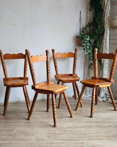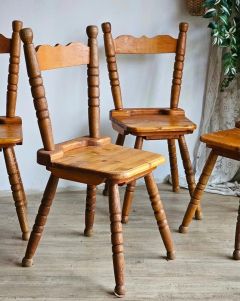 4 chaises massives en bois tourné, esprit chalet / campagne.