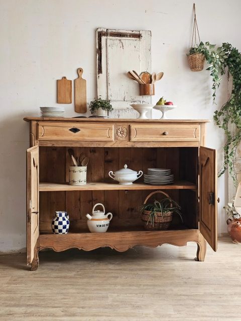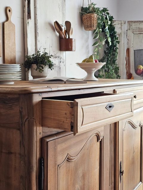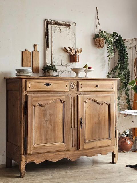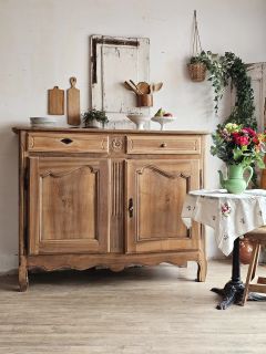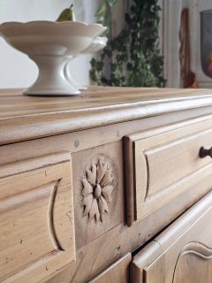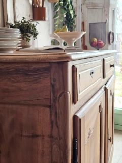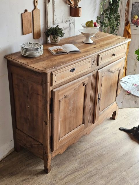 Ancien grand buffet en noyer massif style Louis XV provincial fin XIXe