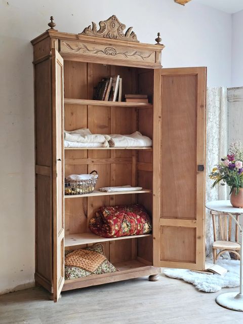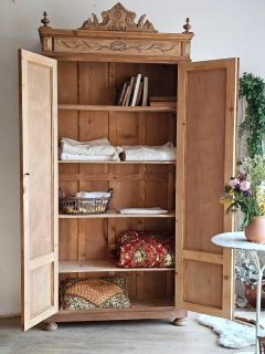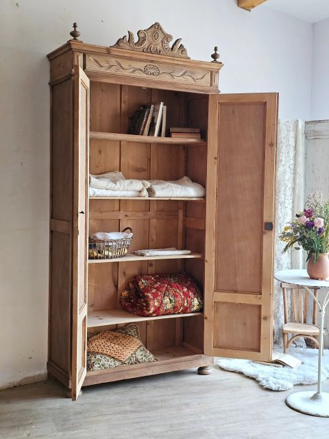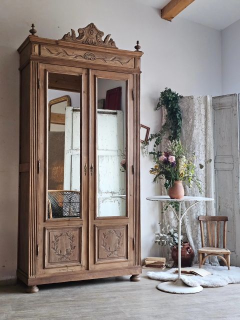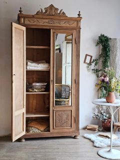 Fine et élancée armoire ancienne de la fin du 19e pleine de caractères.