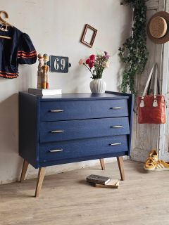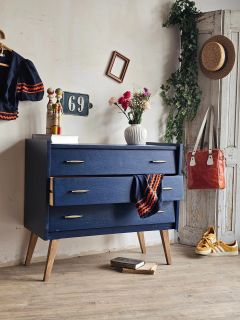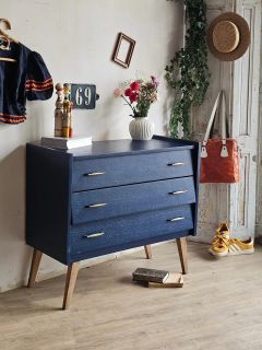 Commode vintage mid-century aux lignes sobres et équilibrées,