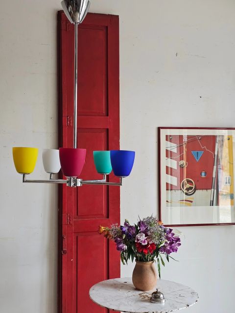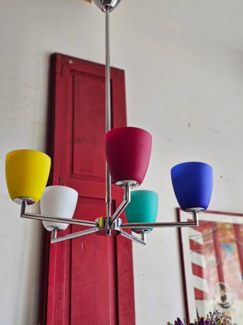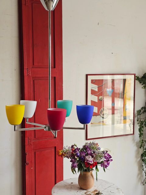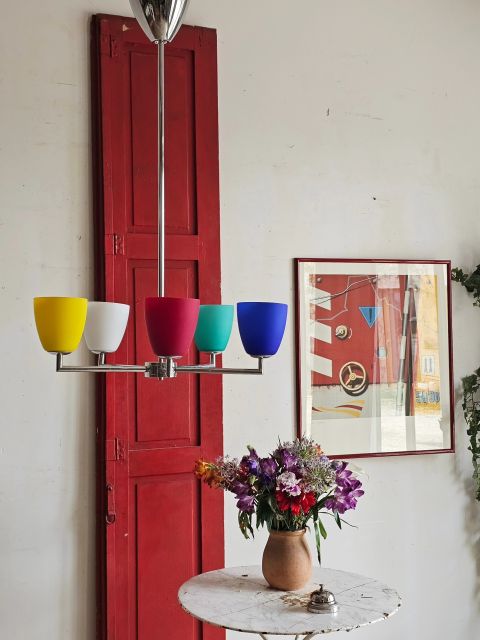 Les 5 tulipes en verre opalin aux couleurs vives sont impeccables.